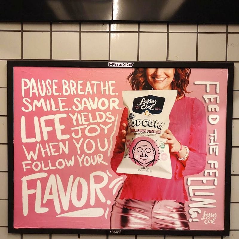 A campaign theme urging consumers to rethink their everyday snack choices. The messaging: “taste good, feel good, do good.” It positions LesserEvil as both more tasty and more mindful.Out-of-home and themed presence